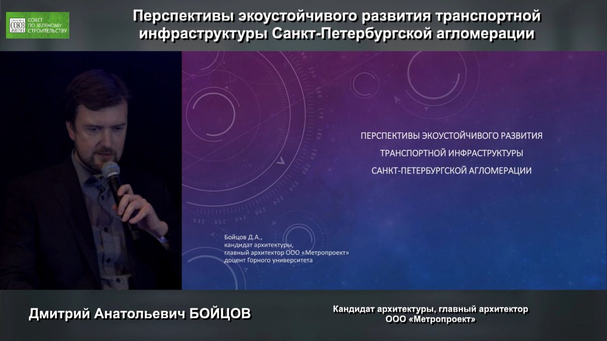 Главный архитектор ООО «Метропроект», доцент Санкт-Петербургского горного университета имени императрицы Екатерины II, кандидат архитектуры Дмитрий Бойцов, в своём выступлении отметил, что приоритет развития транспортной инфраструктуры должен ориентироваться на глобальные цели стратегического развития Санкт-Петербургской агломерации с учётом её уникальной географической специфики.